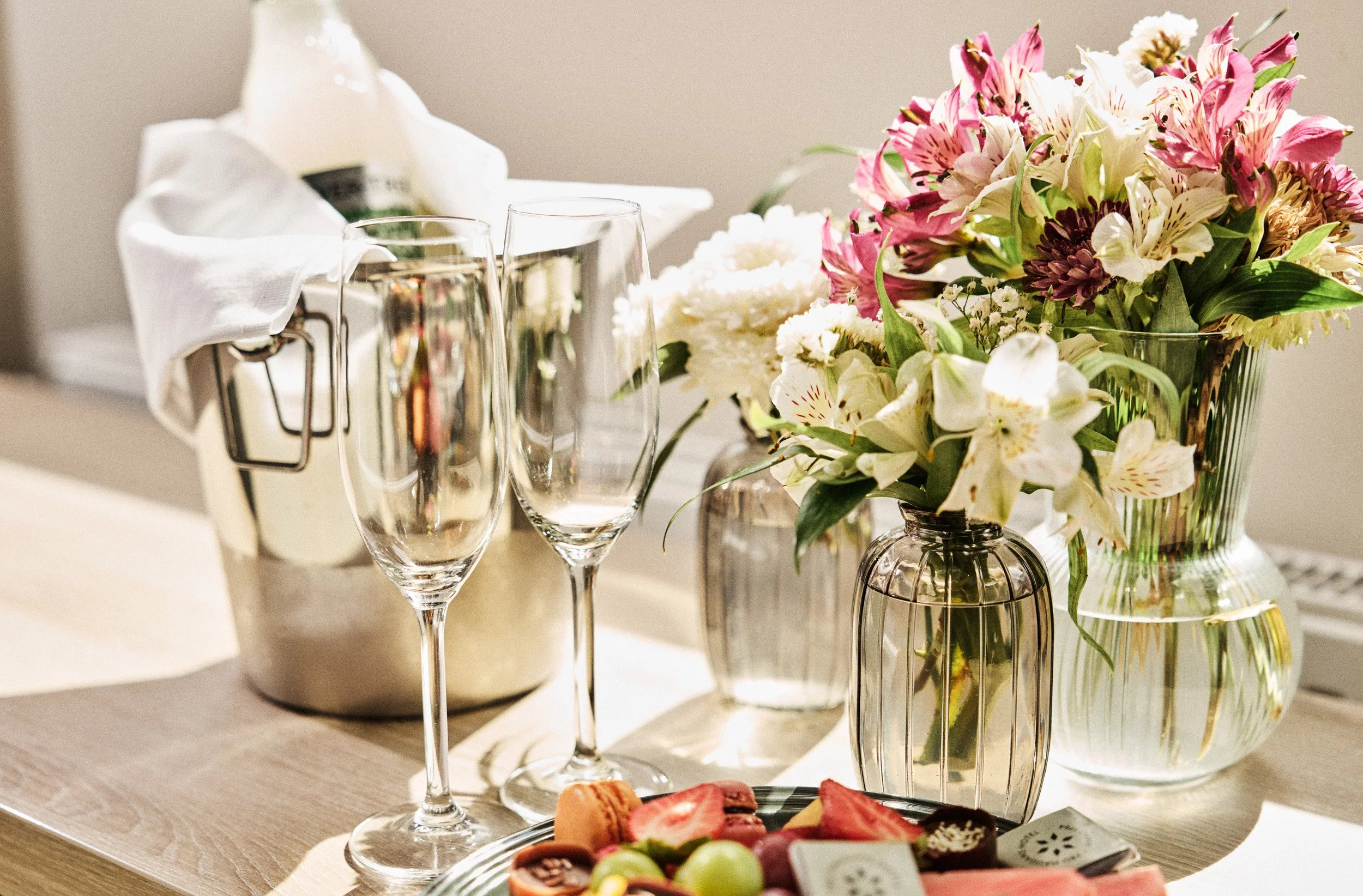 Nyt bryllupsnatten i et av våre lekre rom. Her får dere tid til å nyte hvert øyeblikk i vakre og rolige omgivelser. Vi har selvfølgelig pyntet rommet med blomster, musserende drikke og makroner når dere kommer. Neste dag dekker vi opp til en romantisk og velsmakende frokost på rommet.